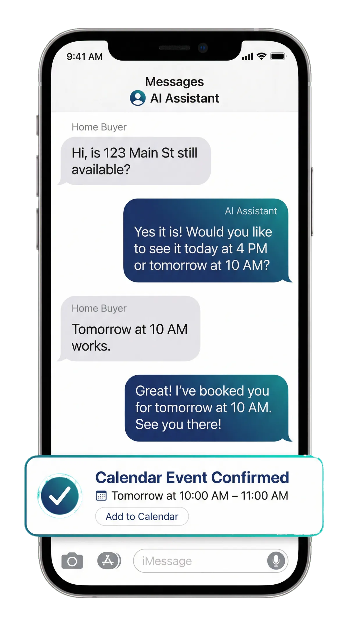 Answer: Our AI is pre-trained on thousands of successful real estate conversations. It knows exactly how to handle objections, answer common questions about buying/selling, and—most importantly—pivot the conversation toward booking an appointment. It sounds completely human, so your leads won't know they're talking to a bot.